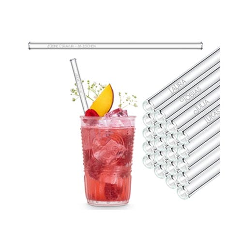 comprar pajitas de cristalPuedes grabar nuestros pajitas de vidrio de manera individual. Deja volar tu creatividad: ya sea con nombres, símbolos o frases.